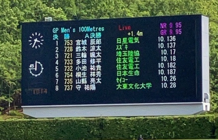 当社陸上部に所属しております宮城 辰郎が出場し、10秒14の自己新記録を更新し、